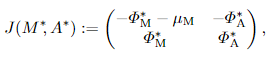 As seen from the second equation in (3), the existence depends on the detail of functions f and g. Suppose its existence now leaving aside the condition about the functions for it. The Jacobi matrix for this equilibrium state of (1) becomes