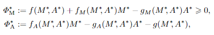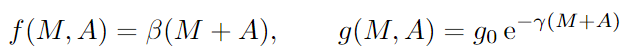 The transition rate from the moderate to the addictive gamer f (M, A) and the inverse transition rate g(M, A) in (1) are assumed to satisfy the following conditions according to their nonnegative meanings and the modeling assumptions given in the previous section: