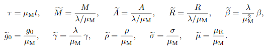 For the mathematical convention, let us apply the following transformation of variables and parameters for (6)