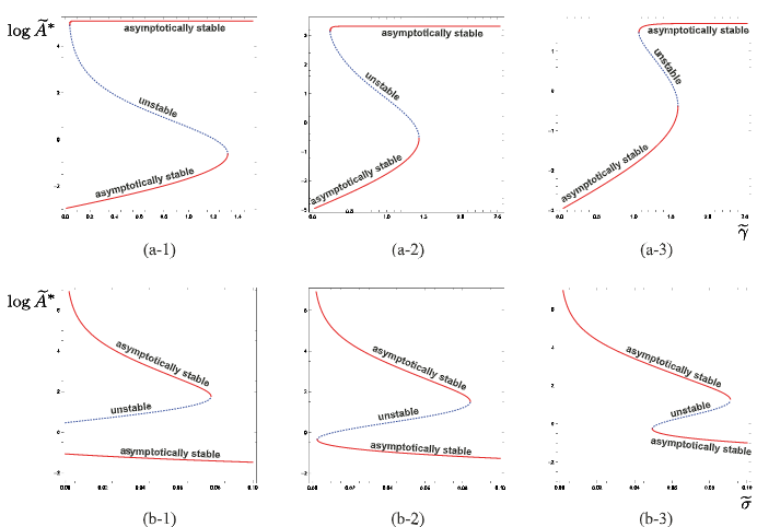 . This argument is used to numerically identify the parameter region where three equilibrium states exist in Fig. 6.