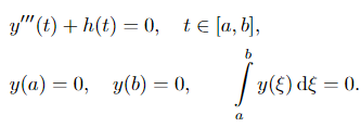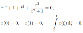 Despite this, third-order boundary value problems with integral type boundary conditions are not sufficiently investigated. Note that nonlocal boundary conditions in particu- lar integral-type boundary conditions often give more precise models. Let us mention some results for such types of problems. Sufficient conditions for the existence and nonexistence of positive solutions were obtained in [9] applying the Guo–Krasnoselskii fixed point theorem. The existence of solutions applying the method of upper and lower functions and Leray–Schauder degree theory was obtained in [18]. The existence, non- existence, and the multiplicity of positive solutions by means of fixed point principle in a cone was studied in [20].