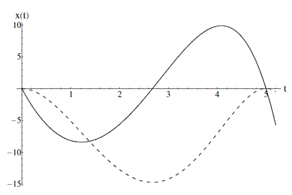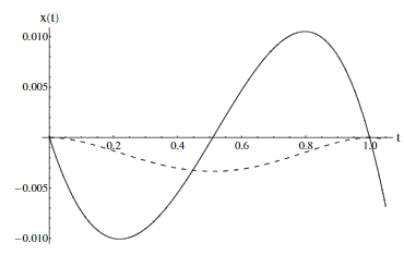 Example 5. Consider problem (8), (10). As we see in Example 2, Theorem 3 cannot be used in this case due to inequality (6). But Theorem 5 is applicable here because inequality (12) holds since