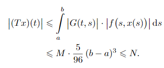 Proof. Since boundary value problem (1), (2) is equivalent to integral equation (5), we need to prove that the mapping