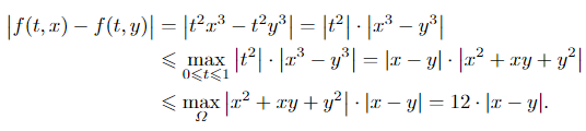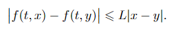 satisfies the Lipschitz condition with respect to x on Ω with constant