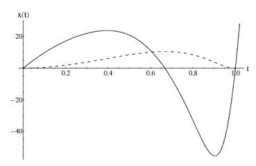 Example 3. Now let us change the function in the equation from Example 1, but consider the same length of the interval in the boundary conditions. So, consider the equation