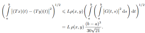 In view of (6), the mapping T satisfies all of the conditions of Theorem 1 and hence has a unique fixed point, which yields a unique solution to (1), (2).