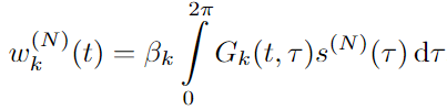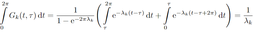 Evaluating each of the three integrals in (27) and having in mind that mean values of participating functions are zero, we obtain