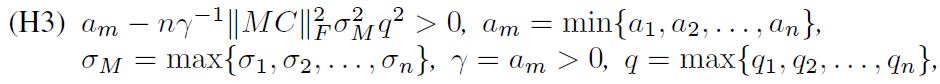 Remark 2. After a scrutiny scan of the latest works of synchronization for delayed or reaction–diffusion HNNs [2, 4, 7, 11, 12, 17, 18, 30, 37–40], we find that these criteria are expressed in the form of LMI toolbox, which heavily rely on the Schur complement theorem and optimization method. Compared with them, our criteria based on matrix norm are expressed explicitly. But their method is also an efficient tool, especially, when the uncertain disturbance is also taken into consideration [3, 4, 37, 40]. One of our object is to apply the LMIs techniques for this subject. Furthermore, our method is similar to the integral inequality method used in [41] and interval matrix method used in [36]. Although their criteria have wide range in application, the model in [41] and [36] is belong to an ordinary differential equation, only time variable is considered. We still hope their meth- ods can be extended to our model in the future work. By the way, the previous criteria for synchronization of reaction–diffusion HNNs are free reaction coefficients