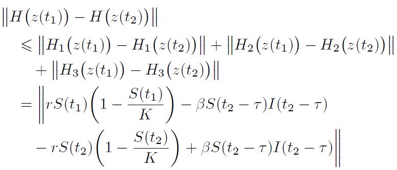 is the latent period of the disease. The locally asymptotical stability of the disease-free equilibrium and endemic equilibrium of system (1) were studied. Hopf bifurcation around the endemic equilibrium was addressed.