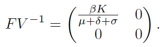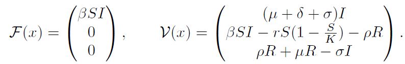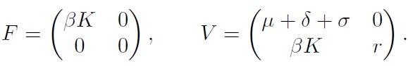 . The basic reproduction number is defined as the average number of secondary infections produced when one infected individual is introduced into a host population, where everyone is susceptible [23]. Now, we use next-generation matrix method in [23] to obtain the basic reproduction number