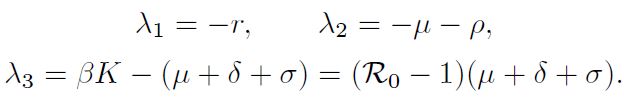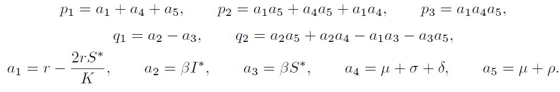 and the last two conditions of Theorem 7 satisfied, the stability of the endemic equilibrium changes at Hopf bifurcation point