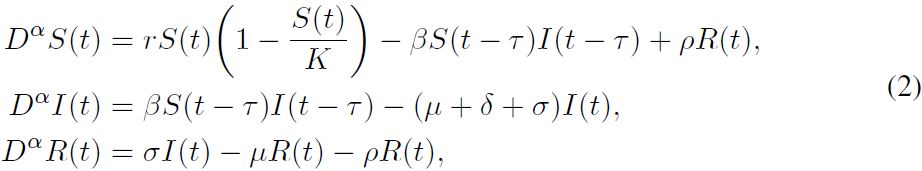 Based on the above analysis, the following SIRS model with Caputo fractional-order derivative and time delay will be studied in this paper:
