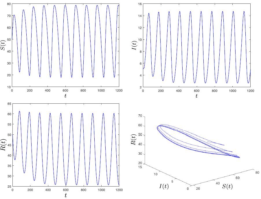 Abstract: Mathematical modeling plays a vital role in the epidemiology of infectious diseases. Policy makers can provide the effective interventions by the relevant results of the epidemic models. In this paper, we build a fractional-order SIRS epidemic model with time delay and logistic growth, and we discuss the dynamical behavior of the model, such as the local stability of the equilibria and the existence of Hopf bifurcation around the endemic equilibrium. We present the numerical simulations to verify the theoretical analysis.