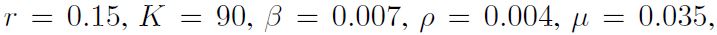 From Fig. 1 we can see that the positive equilibrium of system (2) exhibits a Hopf bifurcation when bifurcation parameter