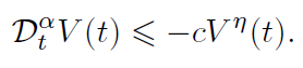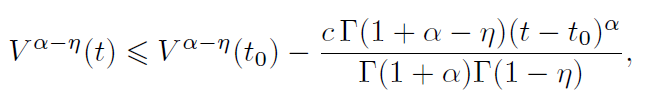 Here the constants c > 0, 0 < η < α. Then V (t) satisfies the following inequality: