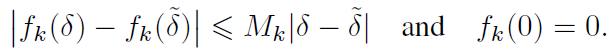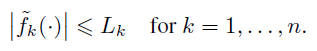 (A1) For k = 1, . . . , n, the activation function fk satisfies the Lipschitz condition: that is, for δ, δ˜ ∈ R, there exists Mk > 0 such that