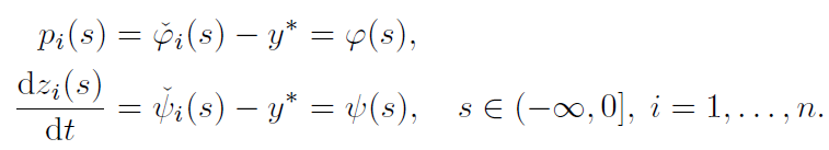 Let x∗ be an equilibrium point of system (1). By a simple transformation pi(t) = xi(t) − x∗ ∈ R we can shift the equilibrium point to the origin. Then system (1) can be rewritten as follows: