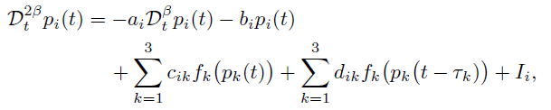 As an extension of integer integral and derivative to arbitrary order, fractional calculus is a field of pure mathematical theory, whose purpose is to extend the definitions of tradi- tional integrals and derivatives to noninteger orders. It remains an open problem in signal processing, laser physics, secure communication, automatic, electricity, electrochemistry and in many search fields due to the nature of these systems, which are considered as long memory systems, and they present a complex dynamic [14]. Although, the mathematical formalism of the noninteger derivative associated with the development of computer tools allowed to envisage applications in the field of science of the fractional-order differential engineer. Today, the fractional approach is applied to the modelling of the consequences of natural disasters [15], to the modelling of electrical devices [16] or to the synthesis of the control [17]. Fractional modelling is also present in the field of the humanities and social sciences or even in biological sciences [18]. Due to the extensive applications, some interesting and important results on fractional-order neural networks have been obtained [19].