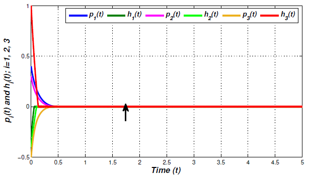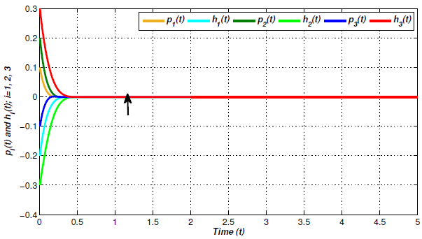 The state trajectories of system (15) without control is depicted in Fig. 1. Afterwards, according to the conditions presented in Theorem 1, we choose