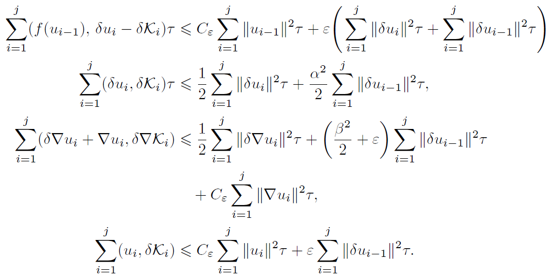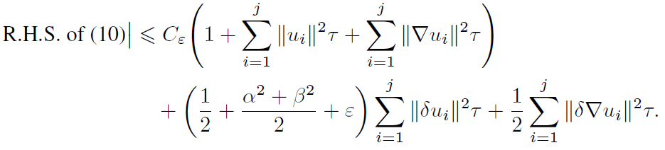 [11]Now we estimate each terms on the right-hand side of equation (10). Following a straight- forward procedure by applying Cauchy and .-Young inequalities together with basic estimates (4), (5), we can obtain