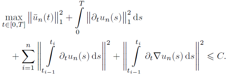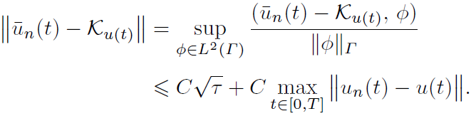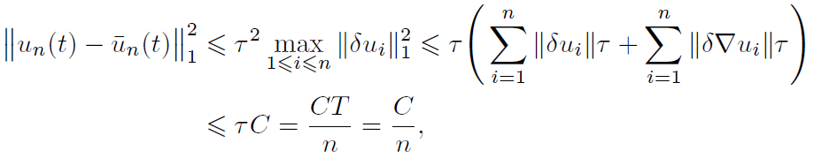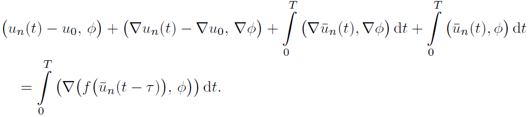 [13]Now, we are about to prove the convergence of the approximate solution un to a weak solution to the variational problem (6). First, we reformulate the estimate from Lemma 3 as follows: