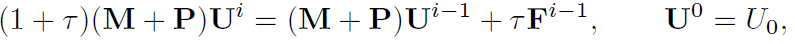 The linear system (23) can be easily solved since the matrices M and P are banded. We can use a direct or either iterative method to solve it.