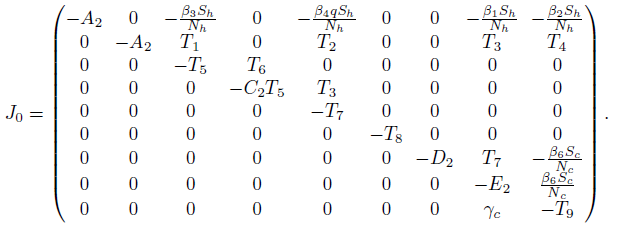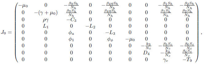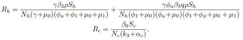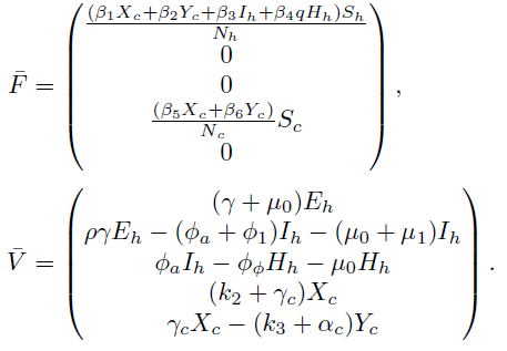 n epidemiology the basic reproduction ratio of an infection can be thought of as the expected number of cases directly generated by one case in a population when all the population are susceptible to infection. We use next-generation matrix method to find the basic reproductive number [6]. In Eq. (3) the matrices