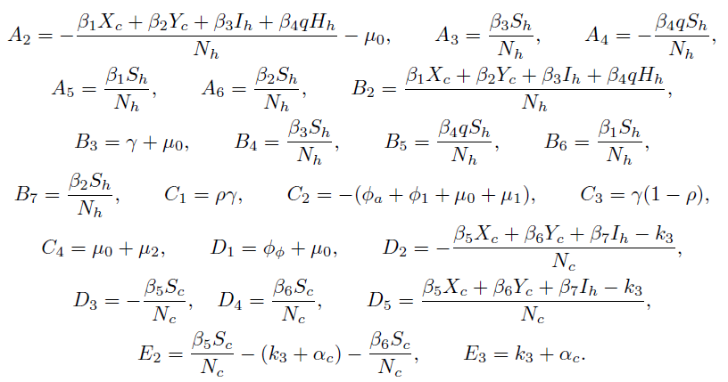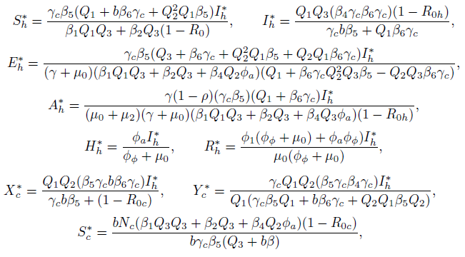 represent any endemic equilibrium point. Solving equations of (1) at steady state gives