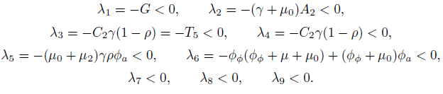 implies that the eigenvalues have negative real parts, thus model (1) is locally asymptotically stable at DFE.