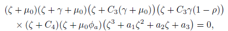After elementary row operation, we get the characteristic equation of the Jacobian matrix (3):