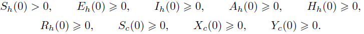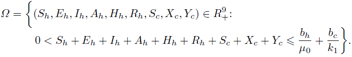 For boundedness, we call total human population in model (1) by Nh(t) and camel population by Nc(t). Let Nh(t) represents the total human population at time t, i.e.,