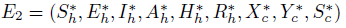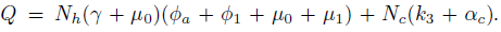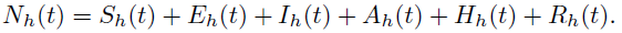 Here bh is the birth rate of human population, β1, β2, β3, β4, β5, β6 show the transmission rate per unit time, q show the approximate transmission rate of hospitalized patient. The rate at which individuals leave the exposed class by becoming infectious is γ. ρ is the proportion of progression from exposed class Eh(t) to symptomatic infectious class Ih(t), 1 ρ is that of progression to asymptotic class Ah(t), φa is the average rate at which symptomatic individuals hospitalize, and φ1 is the recovery rate without being hospitalized. φφ is the recovery rate of the hospitalized patient. µ0 is the natural death rate, µ1, µ2 are death rate due to MERS-CoV.