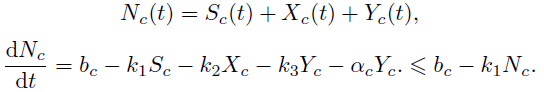 he camel population is represented as SI model, where bc is the birth rate of camel population, Sc represents susceptible camels, Xc represents asymptomatic infected camels, and Yc represents symptomatic camels. γc is the moving rate from asymptomatic camel to symptomatic camel population. k1, k2, k3 are the natural death rate of susceptible, asymptomatic camel, and symptomatic infected camels. αc is the death rate due to MERS- CoV. Nh and Nc are human and camel populations, respectively.