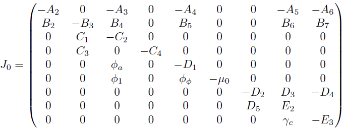 Proof. By applying the row operation and some simplification to the matrix (2) we have the following Jacobian matrix: