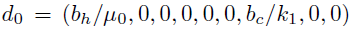 For disease-free equilibria, we set all the variables and rate of change equal to zero except