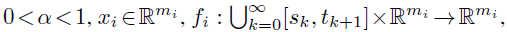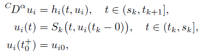 Example 2. Consider the following fractional-order impulsive control coupled system with noninstantaneous impulses on network: