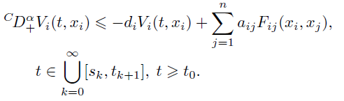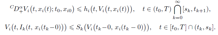 in each vertex. This method overcomes the difficulty of directly finding appropriate Lyapunov functions. Furthermore, it is easier to obtain the practical stability of these types of frac- tional coupled systems with noninstantaneous on networks.