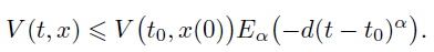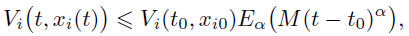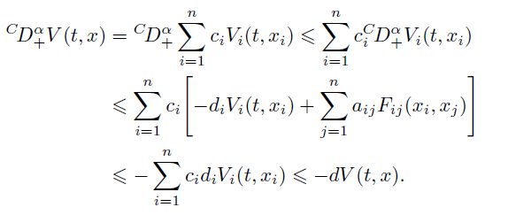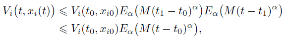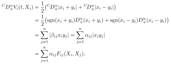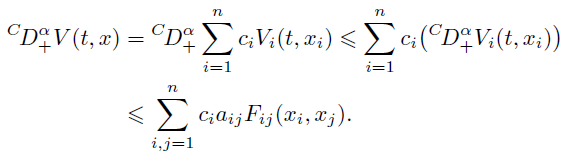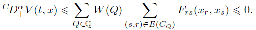 Coupled systems of differential equations on networks (CSDENs) have been widely applied in various fields of biology, engineering, social science and physical science such as in modeling the spread of infectious diseases in heterogeneous populations, neural networks, ecosystems and so on [4, 5, 12, 24, 28]. Especially, the stability analysis of CSDENs is one of the most essential topics in practice. Li and Shuai [16] proposed a new method by combining graph theory with Lyapunov methods to investigate global stability problem for CSDENs. Since then, Suo [23] applied results from graph theory to construct global Lyapunov functions and then established a new asymptotic stability and exponential stability principles. However, many results about stability of coupled system on networks utilize differential equations of integer order [22, 26]. Until now, there are few relevant researches about stability analysis for coupled systems of fractional-order differential equations on networks (CSFDENs). Li and Jiang [14] investigated CSFDENs, they obtained a global Mittag-Leffler stability principles by Lyapunov method and graph theory. Recently, Li [15] studied stability of fractional-order impulsive coupled nonau- tonomous (FOIC) systems on networks using graph theory and Lyapunov method to get stability for a kind of FOIC systems. Some remarkable achievements have been made in [8, 13–15, 18, 22, 26] during the past few years.