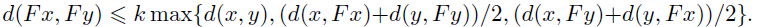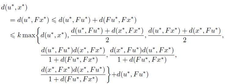 defined on it. The study is a part of the subject domain known as metric fixed point theory. The subject is widely recognized to have been originated in the work of Banach in 1922 [1], which is known as the Banach’s contraction mapping principle and is instrumental to the proofs of many important results. In subsequent times, many metric fixed point results were proved and applied to different problem arising in mathematics. Today fixed point methods are recognized as strong mathematical methods. References [12, 13] describe this development to a considerable extent.