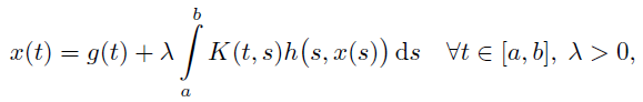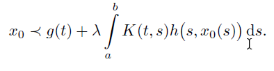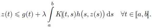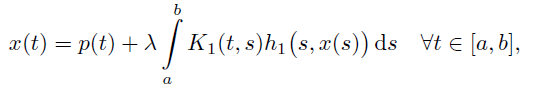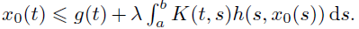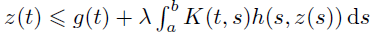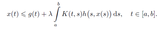 (25)where p ∈ .([a, b]) and h. : [a, b] × [a, b] → [0, ∞), K. : [a, b] × [a, b] → [0, ∞) are continuous mappings, then for all t ∈ [a, b],