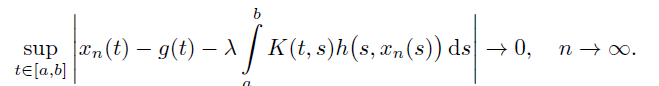 Proof. By Theorem 7 the integral equation (19) has a unique solution ... Hence, it is a unique fixed point of the function . : . → . defined by (20). Let {x.} be a sequence in .([a, b]) such that sup