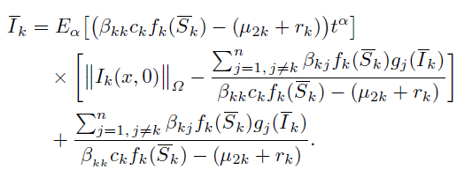 the uniform persistence and the global stability of the endemic equilibrium point E∗ are discussed. The proposed model, a more accurate epidemic model, can help us to understand some dynamical behaviors of infectious diseases. Moreover, theoretical results may provide some useful guidance for making effective countermeasures on infectious diseases. However, the relationship between system (7) and fractional order α is still an open question, which will be our future work.