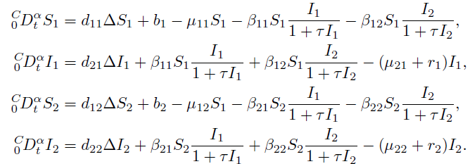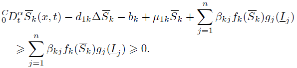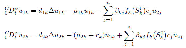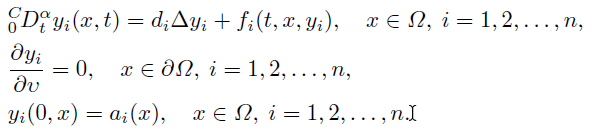 , this phenomenon is called subdiffusion, which can be the diffusion of proteins within cells or the diffusion of viruses between individuals [29]. And it results in a Caputo time-fractional reaction– diffusion system with fractional order