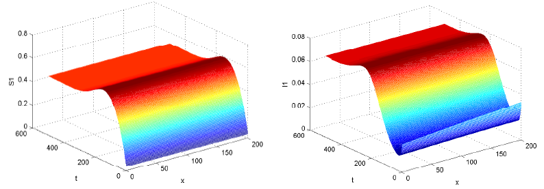 (4)But individual movement is not be considered in system (4) that is unrealistic, then Wu et al. considered the following SIR epidemic model with diffusion [27]: