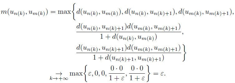 Remark 2. In the proof of the main theorem [7, p. 586, line 1., Thm. 1, case 3], the authors used the fact that rectangular metric d (see also inequality (5) on the same page) is continuous, which is not given in the formulation of Theorem 1 in [7]. In the proof of the same theorem (p. 585), the authors also claimed that