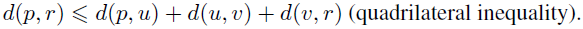 In 2000, generalized metric spaces were introduced by Branciari [6] in such a way that the triangle inequality is replaced by the quadrilateral inequality d(x, y) ≤ d(x, z) + d(z, u) + d(u, y) for all pairwise distinct points x, y, z, and u. Any metric space is a generalized metric space, but in general, generalized metric space might not be a metric