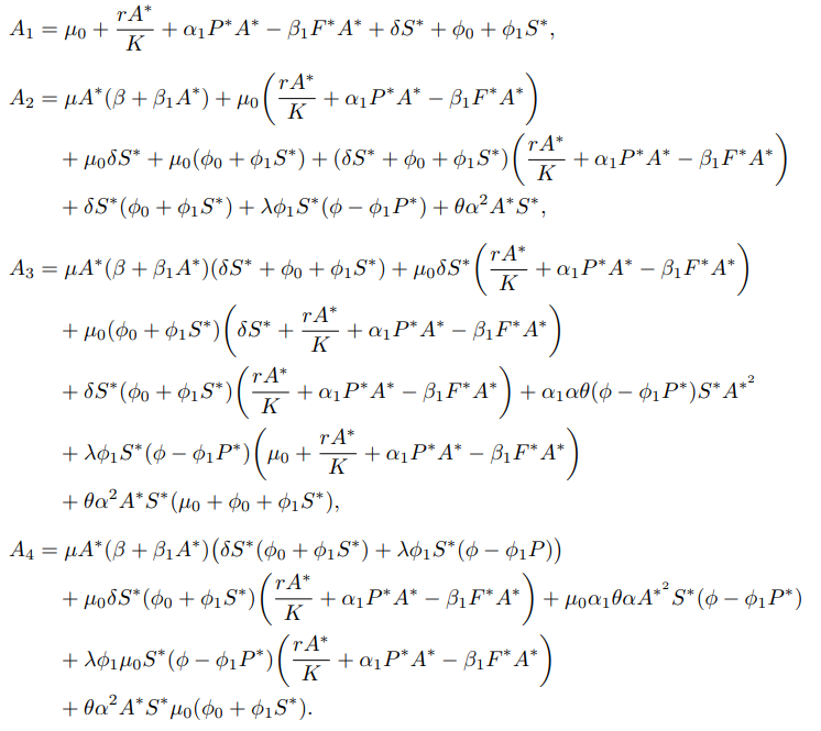 .In this equilibrium, all the system’s variables are nonzero and this describes the dynamics of proposed modelIn interior equilibrium