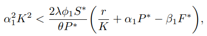 (10)is satisfied, then the roots of equation (9) are either negative or with negative real part, and in this case, all the solution trajectories starting nearby the equilibrium E* approach to E∗ as t tends to infinity.