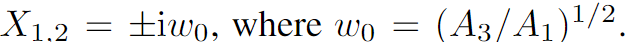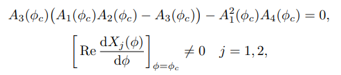 (16)If X3 and X4 are complex conjugates, then from equation (15), we have 2 Re(X3)=−A1, i.e., X3 and X4 have negative real parts. If X3 and X4 are real roots, then from equations (15) and (16) we find that X3and X4 are negative. Thus, the roots X3 and X4 lie in the left half of the complex plane. This ensures the presence of Hopf bifurcation