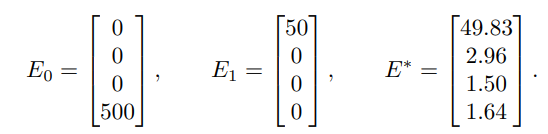 Here we see that one eigenvalue for equilibrium E0 is positive, this means E0 is unstable. Similarly, one eigenvalue of the Jacobian matrix evaluated at equilibrium E1 is positive, implying the instability of E1. All eigenvalues of the Jacobian matrix at E∗ are with negative real part. This implies that the interior equilibrium E∗ is locally asymptotically stable. Further, we checked the stability condition stated in Theorem 1, for this, we calculate the values of A1 = 0.44,A2 = 2.62, A3 = 0.78 and A4 = 0.073, which are positive. Also the value of (A3(A1A2 − A3) − A2 1A4) = 0.28, which is also positive, this means the stability condition stated in Theorem 1 is satisfied, and the interior equilibrium E∗ is locally asymptotically stable